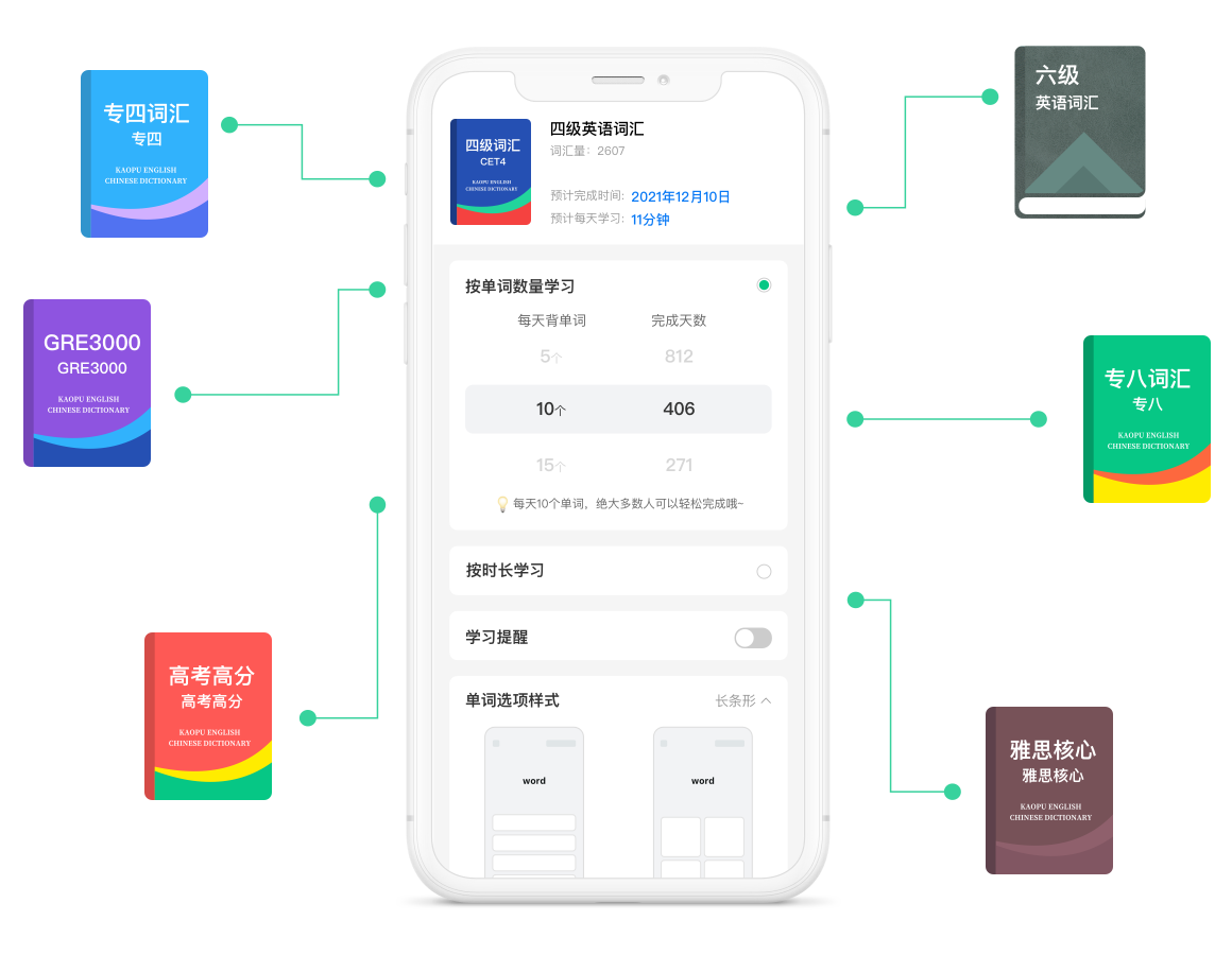 海量词汇,自定任务,学习更加得心应手